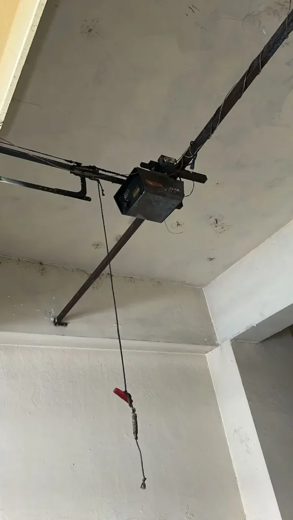 - Los paneles de la puerta seccional estaban separándose, lo que indicaba desgaste estructural y falta de mantenimiento.